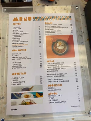 Menu dari Kitara Arta